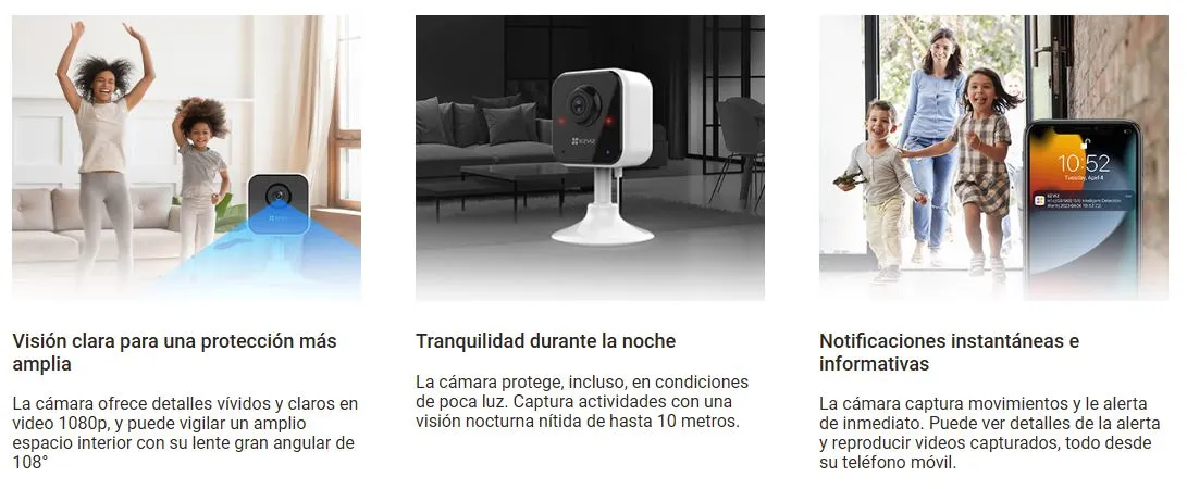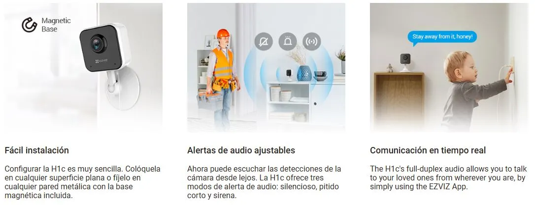 La H1c es una cámara de interior esencial sencilla pero confiable ideal para vigilar a sus hijos y mascotas, a la vez que ofrece protección para su hogar de día y de noche. La cámara cuenta con todas las funciones esenciales para una cámara compacta fácil de usar que se adapta a cualquier espacio del hogar. Ofrece una gran calidad de video, visión nocturna nítida, detección de movimiento y audio bidireccional. Además, proporciona comodidad adicional gracias a su diseño fácil de instalar, modo de suspensión, tres modos de alerta sonora y mucho más.