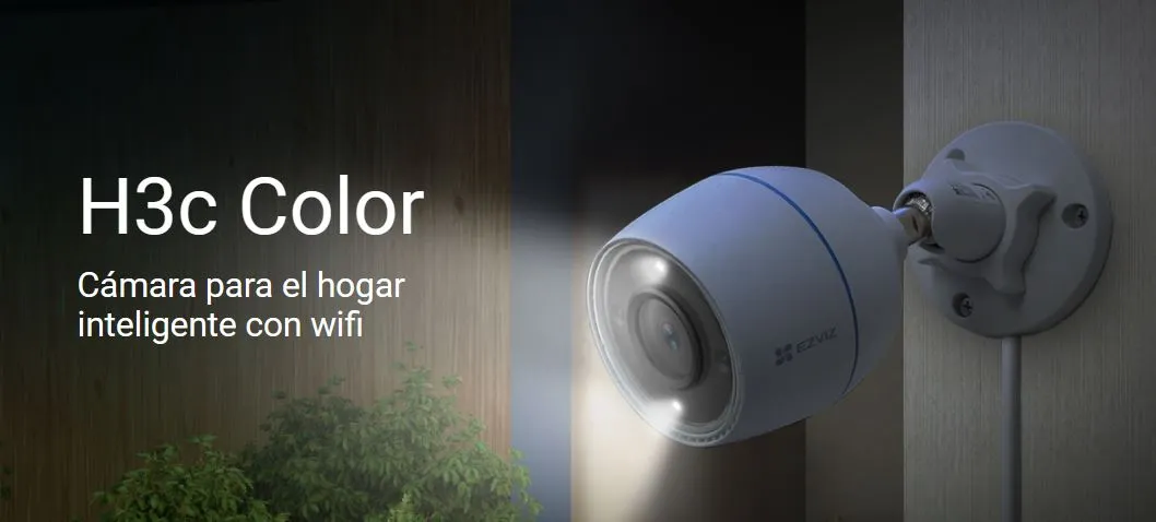 Cámara wifi EZVIZ H3C de 2mp full HD 1080p una cámara inteligente que incluya todas las funciones esenciales para invertir bien su dinero. La cámara es fiable en todos los aspectos principales, ya que cuenta con visión nocturna en color, carcasa con diseño resistente a la intemperie IP67, detección de la forma humana con tecnología de IA y gran capacidad de almacenamiento local. Tanto de día como de noche, la H3c Color puede proteger bien su hogar.